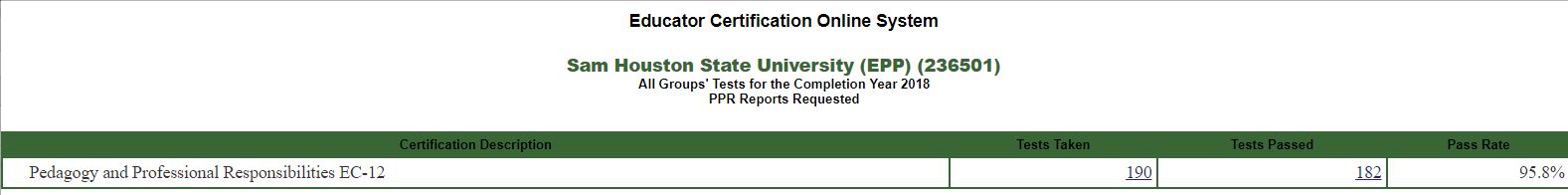 2017-18 SBEC PPR TExES Pass Rate